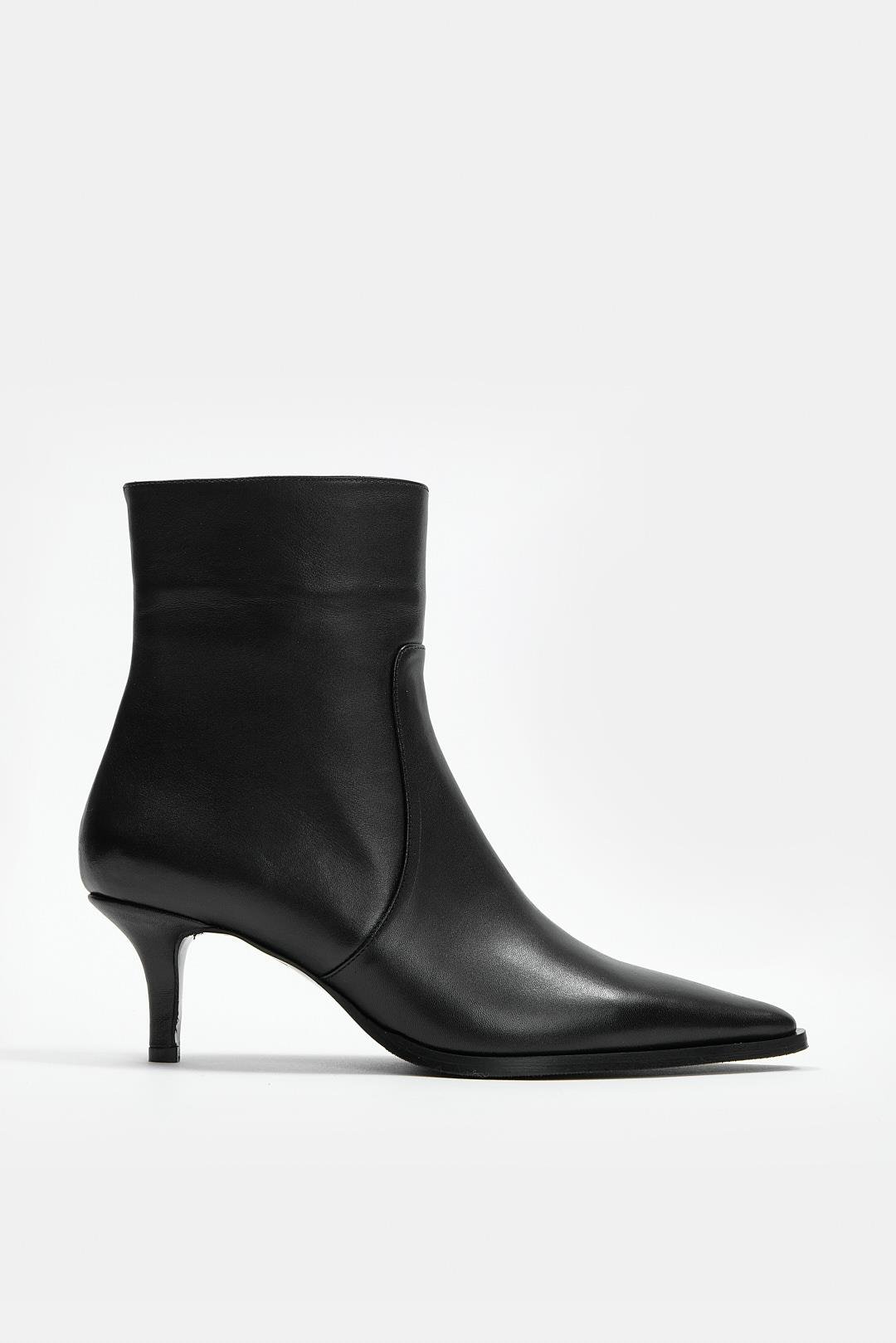 Siyah deri sivri burunlu yandan fermuarlı topuklu kadın bot. Zarif tasarımı ve üstün kalite el işçiliğiyle şıklığı ve konforu bir arada sunar. Bilek Genişliği: 28.5 cm Uzunluk: 21 cm ( 37 numara için geçerlidir, numaralar arasında 1 er cm fark etmektedir. ) Tüm ürünlerimiz, sadece birinci sınıf kalite deri ile üretilmektedir.