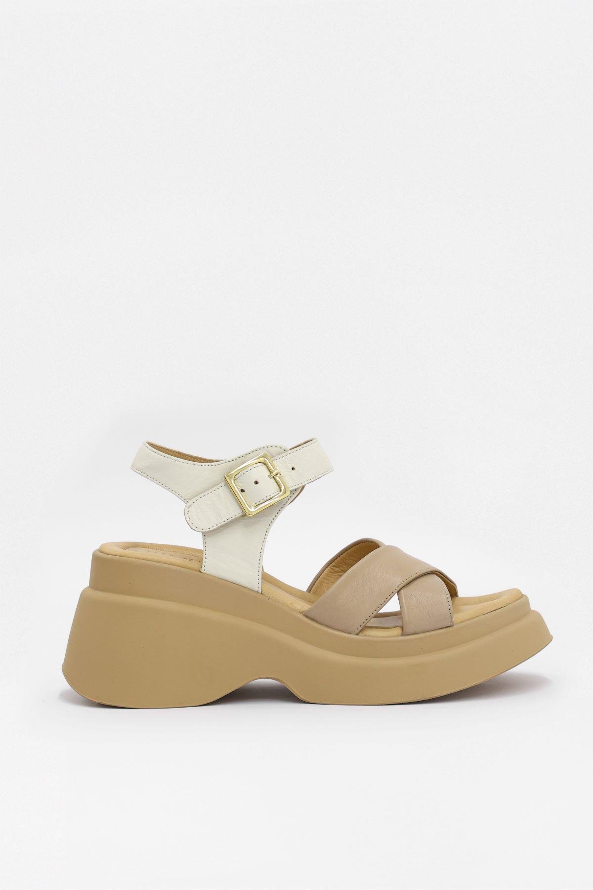 Nude Hakiki Deri Bilekten Ayarlanabilir Bantlı Topuklu Kadın Sandalet