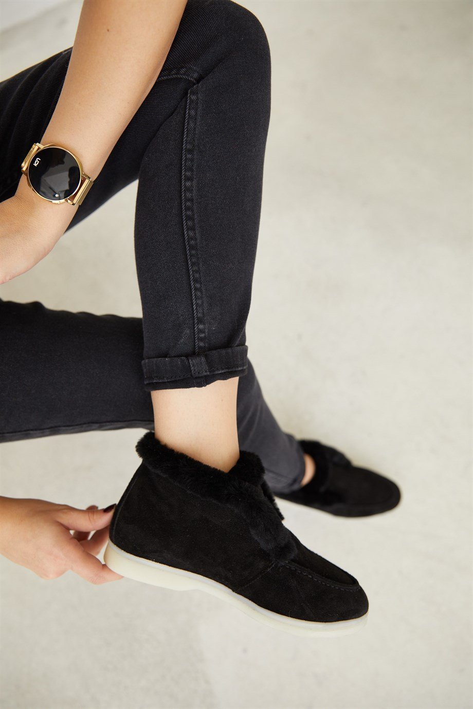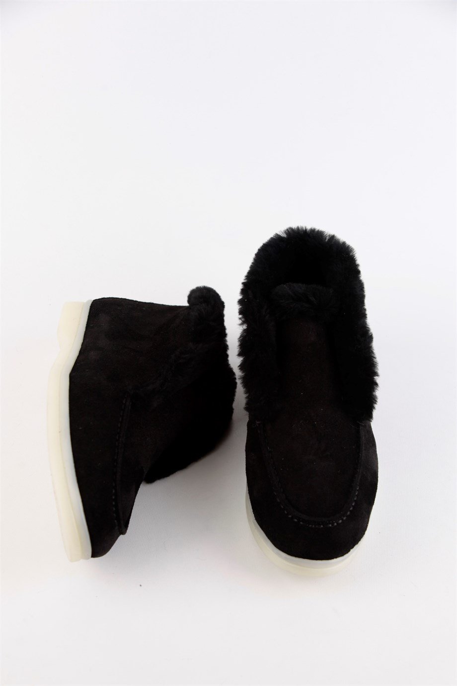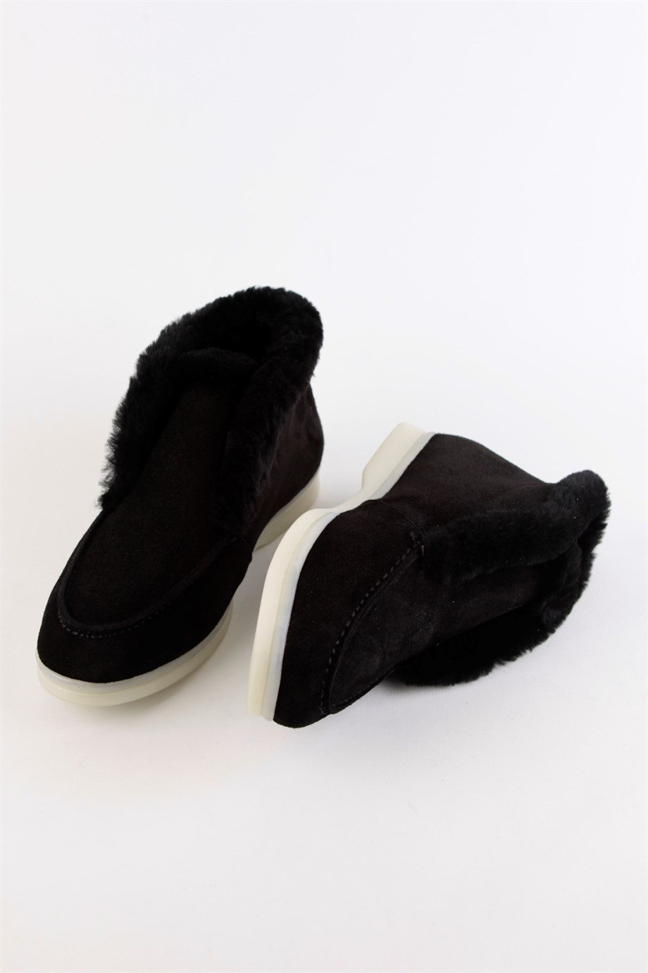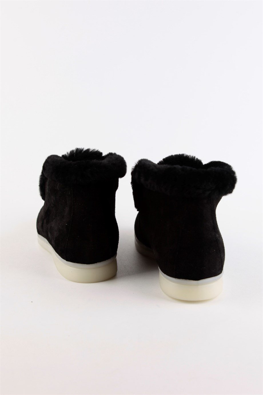 Black Suede Shearling Women's Casual Shoes.