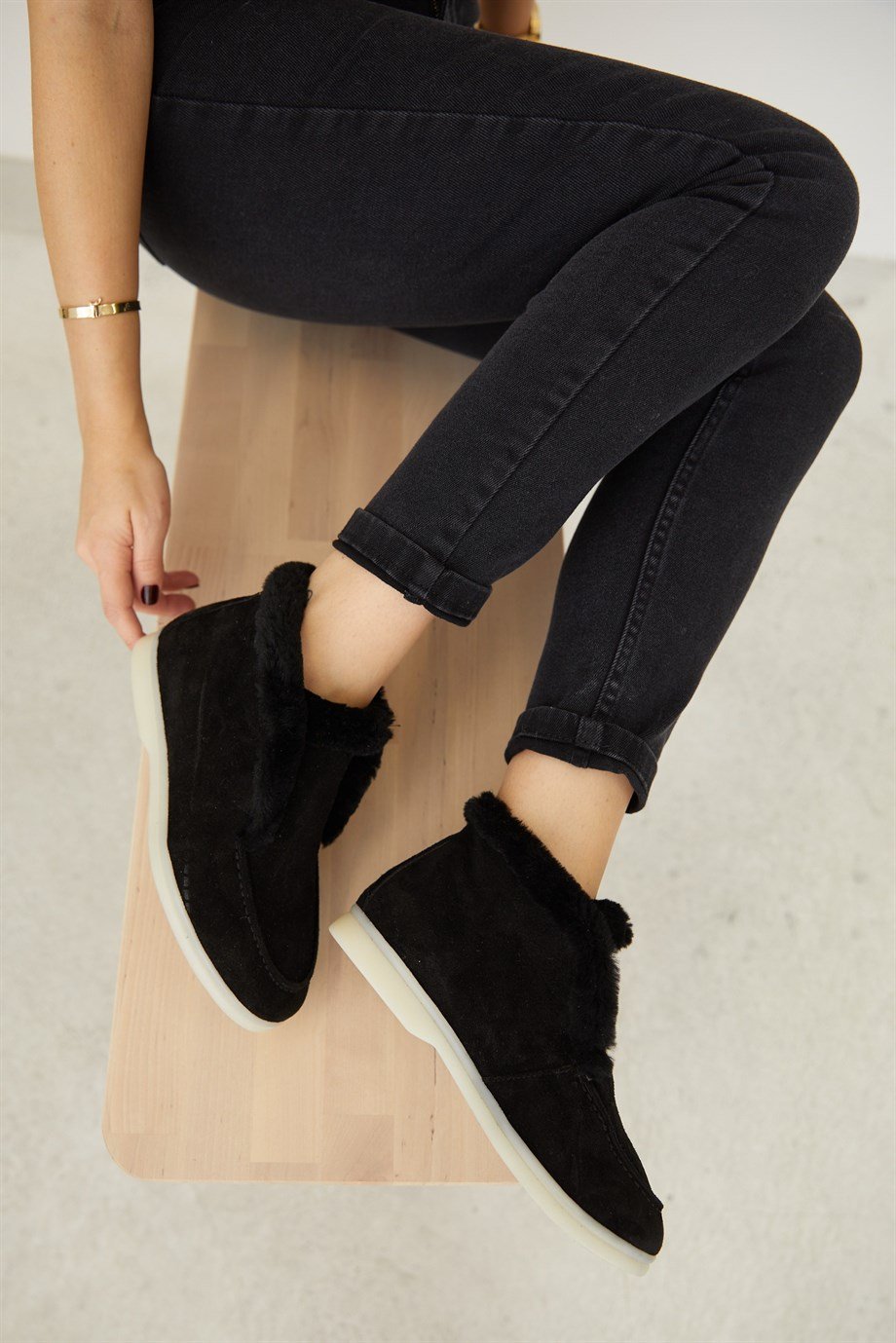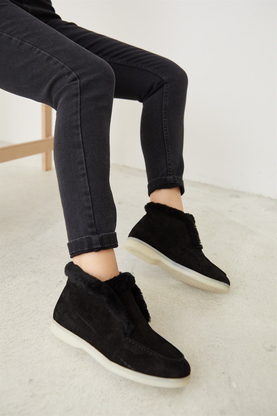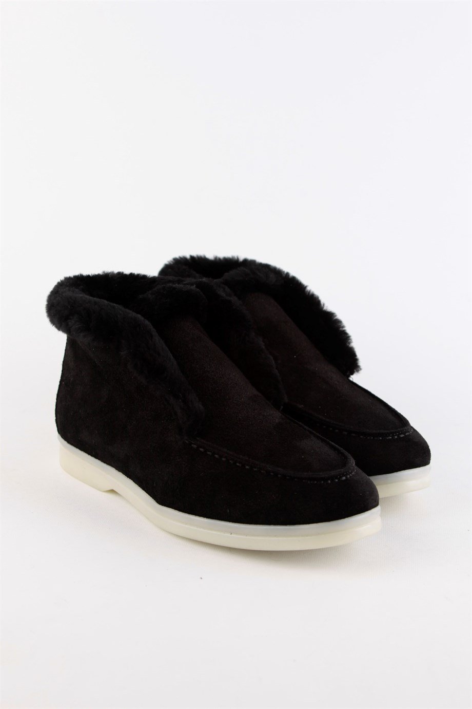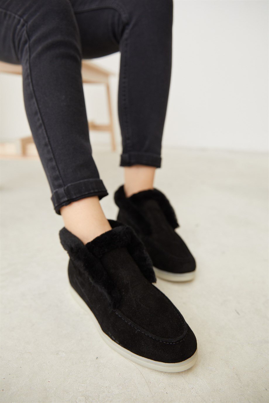 Black Suede Shearling Women's Casual Shoes.