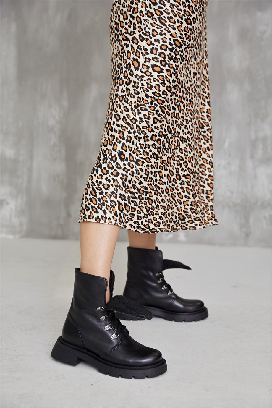 Black Leather Lace-up Women's Ankle Boots.