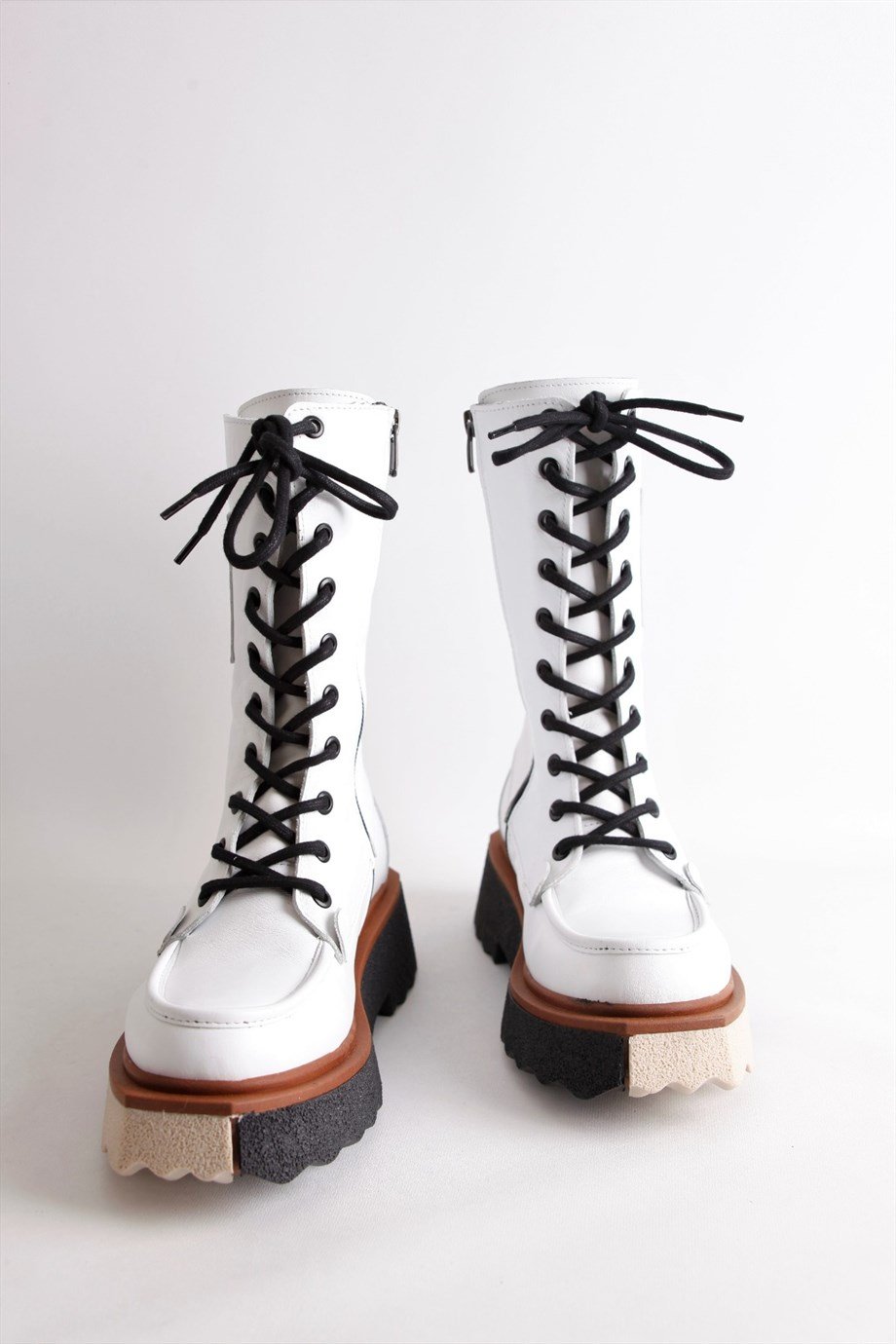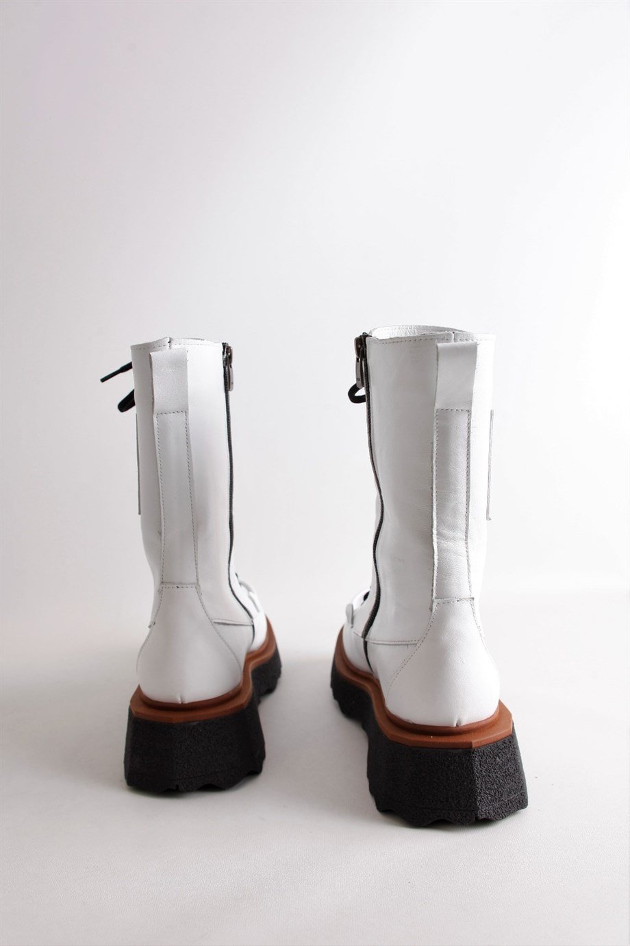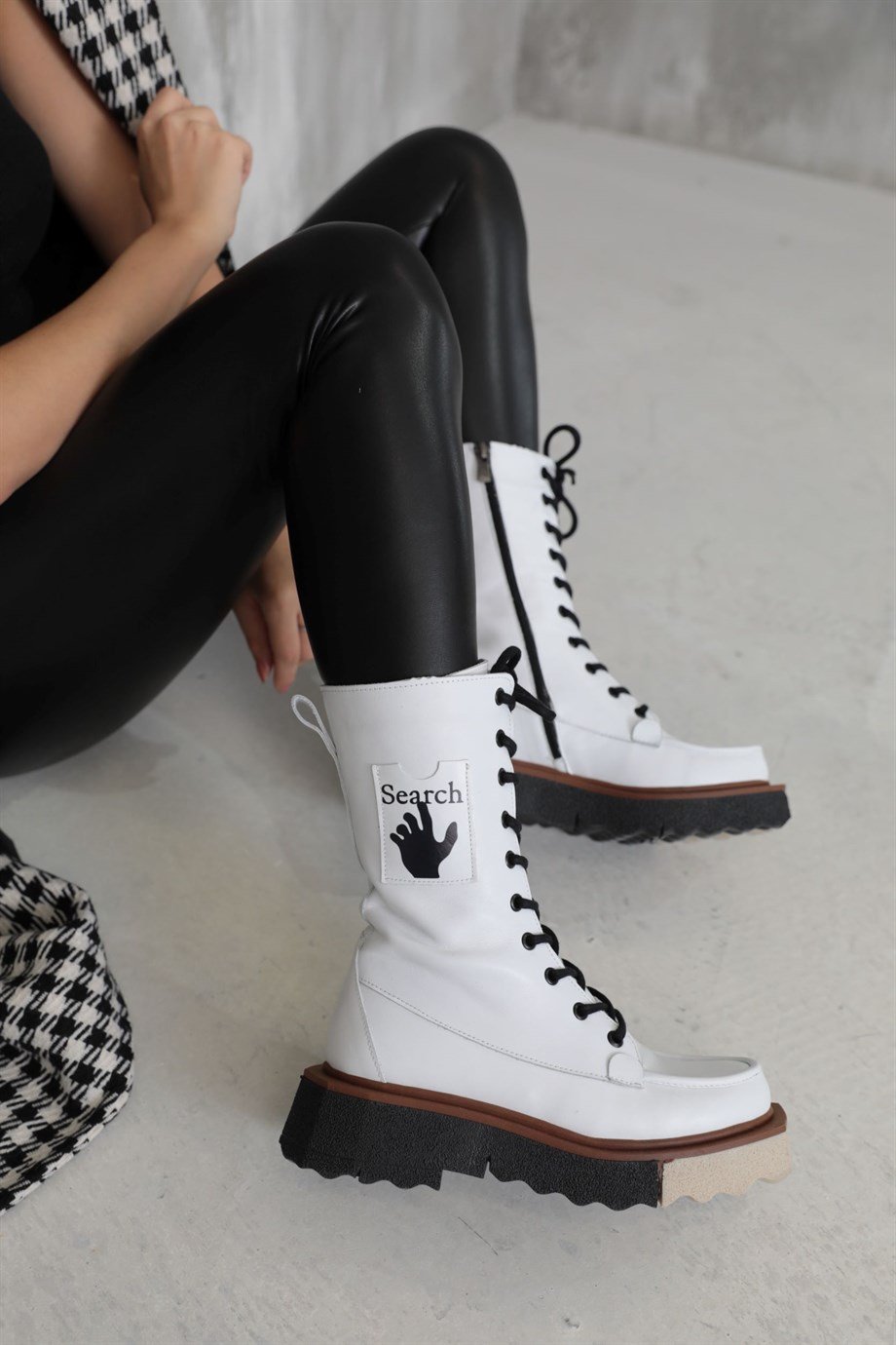 White Leather Lace-up Women's Boots with Zipper on the Side.