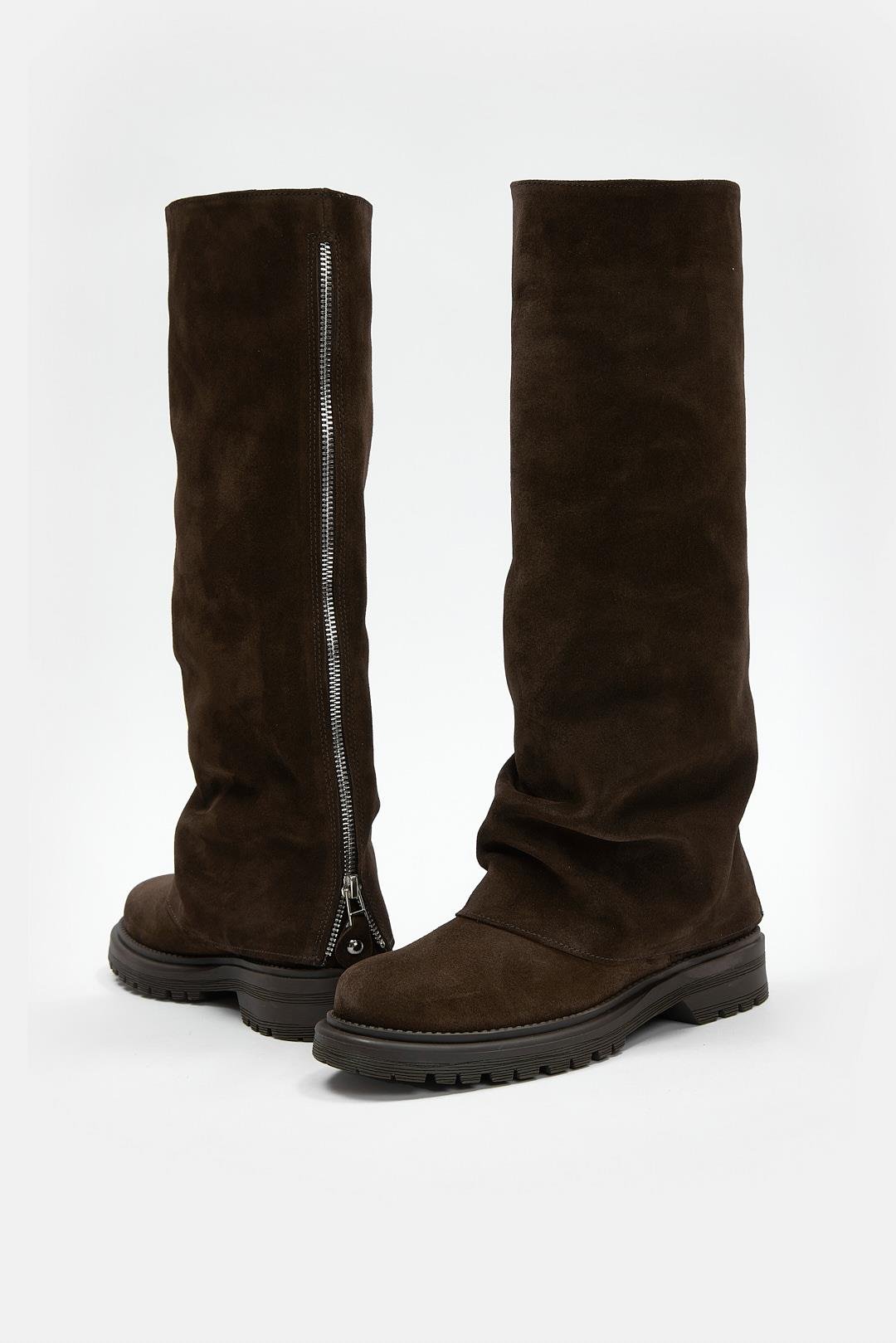 Acı kahve süet hakiki deri, arkası aksesuar fermuarlı düz kadın çizme. Zarif tasarımı ve üstün kalite el işçiliğiyle şıklığı ve konforu bir arada sunar. Baldır Genişliği: 39 cm Bilek Genişliği: 31 cm Uzunluk: 42 cm ( 37 numara için geçerlidir, numaralar arasında 1 er cm fark etmektedir. ) Tüm ürünlerimiz, sadece birinci sınıf kalite deri ile üretilmektedir.
