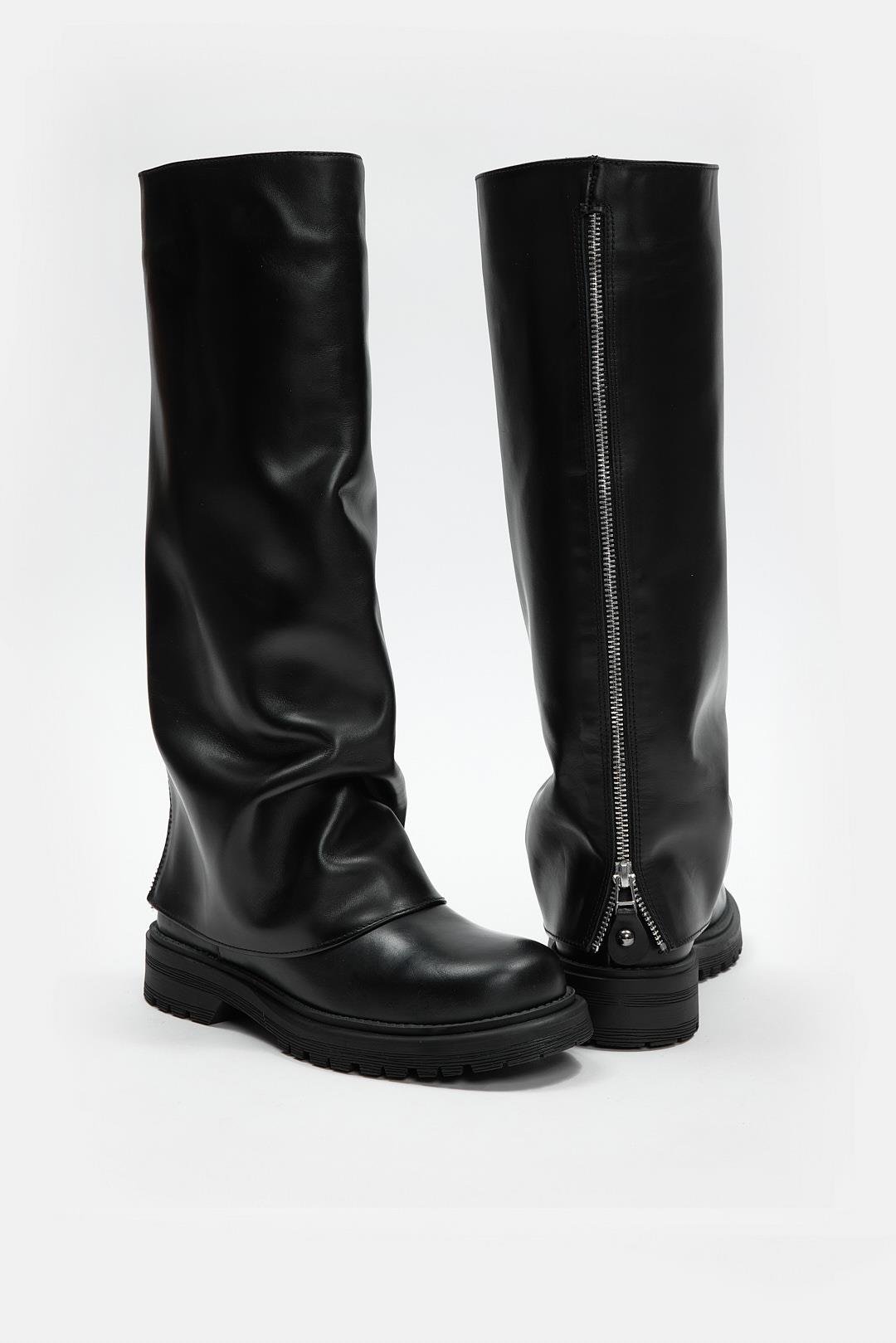 Siyah hakiki deri, arkası aksesuar fermuarlı düz kadın çizme. Zarif tasarımı ve üstün kalite el işçiliğiyle şıklığı ve konforu bir arada sunar. Baldır Genişliği: 39 cm Bilek Genişliği: 31 cm Uzunluk: 42 cm ( 37 numara için geçerlidir, numaralar arasında 1 er cm fark etmektedir. ) Tüm ürünlerimiz, sadece birinci sınıf kalite deri ile üretilmektedir.