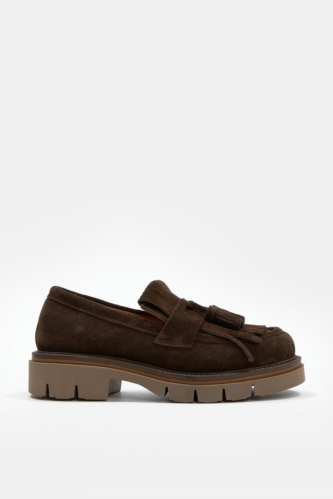 Acı kahve süet, püsküllü kadın loafer. Esnek termo tabanı ile her adımda şıklığı ve rahatlığı bir arada sunar.