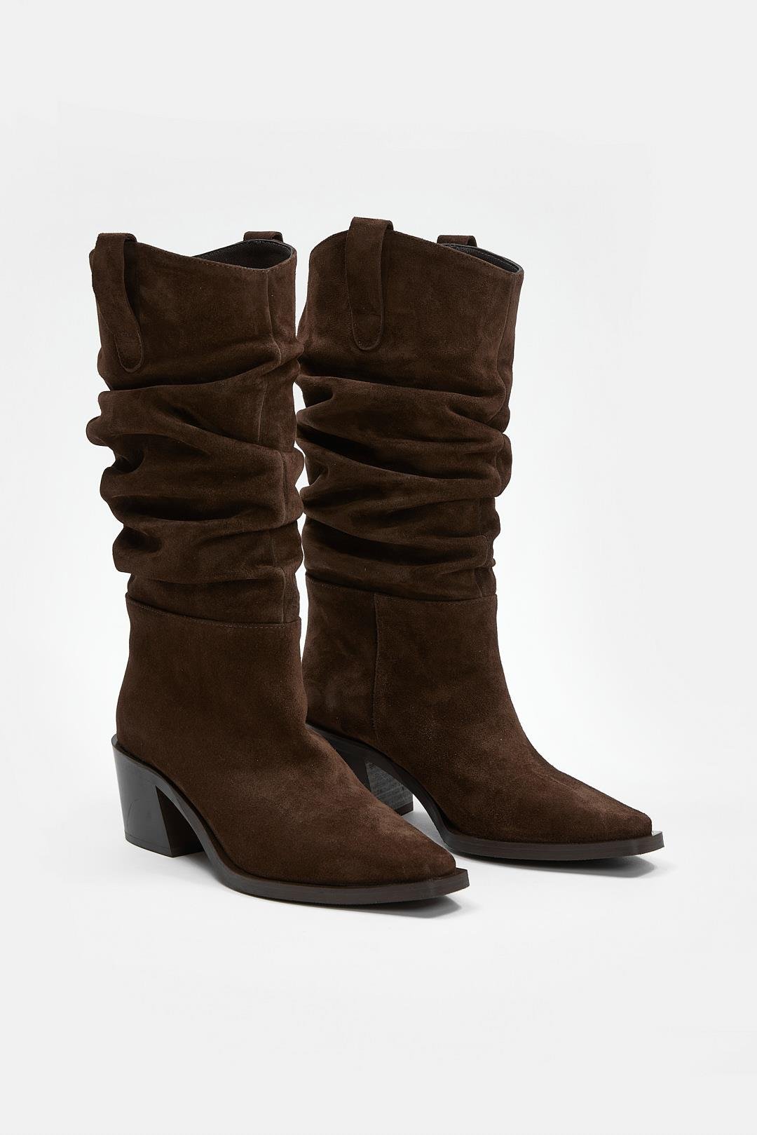 Acı kahve süet hakiki deri, baldır kısmı körüklü topuklu kadın çizme. Zarif tasarımı ve üstün kalite el işçiliğiyle şıklığı ve konforu bir arada sunar. Baldır Genişliği: 38 cm Bilek Genişliği: 32 cm Uzunluk: 37 cm ( 37 numara için geçerlidir, numaralar arasında 1 er cm fark etmektedir. ) Tüm ürünlerimiz, sadece birinci sınıf kalite deri ile üretilmektedir.