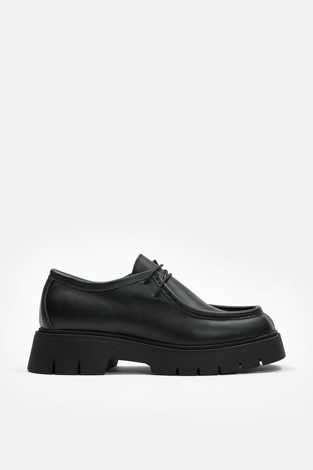Siyah deri bağcıklı kadın ayakkabı, şıklığı ve konforu bir araya getirir. Kaymaz ve dayanıklı termo tabanı sayesinde gün boyu güvenle adım atın. Birinci sınıf deri ve el işçiliğiyle üretilen bu model, stilinizi her ortamda ön plana çıkarır.