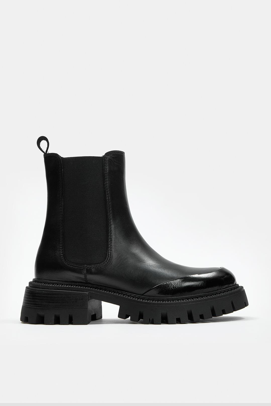 Siyah deri, burun ucu siyah rugan yan kısımları latikli kadın bot. Zarif tasarımı ve üstün kalite el işçiliğiyle şıklığı ve konforu bir arada sunar.